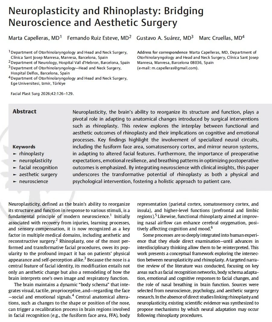 Cada publicación refleja su enfoque basado en la evidencia y su compromiso con la excelencia. A través de su investigación, la Dra. Capelleras no solo perfecciona sus técnicas, sino que también ayuda a la comunidad médica a comprender mejor la relación entre función, estética y neuroadaptación en la cirugía nasal.